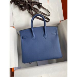 Hermes Birkin 25 Retourne Handmade Bag in Blue Prusse Box Calfskin