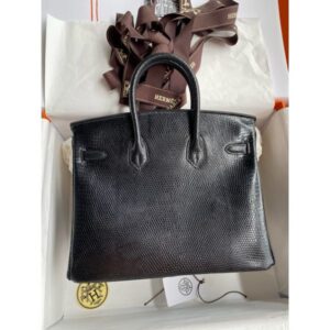 Hermes Birkin 25 Retourne Handmade Bag in Black Lizard Leather