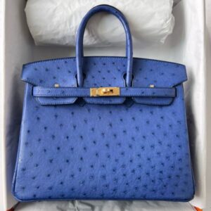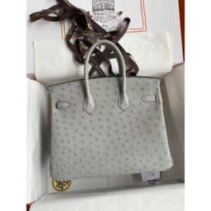 Hermes Birkin 25 Retourne Handmade Bag In Blue Glacier Ostrich Leather