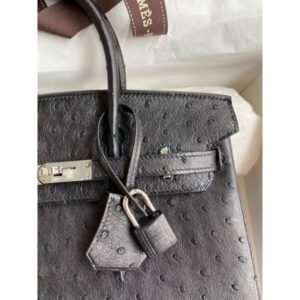 Hermes Birkin 25 Retourne Handmade Bag In Black Ostrich Leather