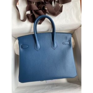 Hermes Birkin 25 Retourne Handmade Bag In Blue Agate Epsom Calfskin