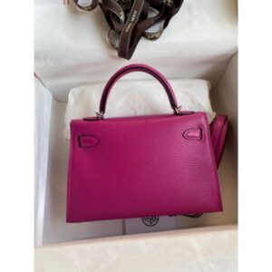 Hermes Kelly Mini II Sellier Handmade Bag In Rose Purple Chevre Mysore Leather