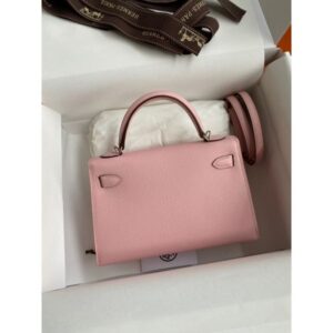 Hermes Kelly Mini II Sellier Handmade Bag In Rose Sakura Chevre Mysore Leather