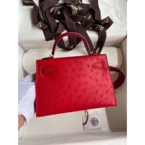 Hermes Kelly Mini II Sellier Handmade Bag In Red Ostrich Leather