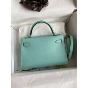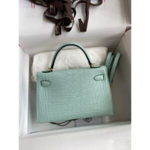 Hermes Kelly Mini II Sellier Handmade Bag In Vert D’eau Matte Alligator Leather