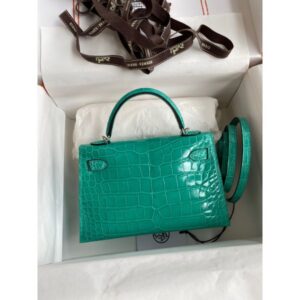Hermes Kelly Mini II Sellier Handmade Bag in Vert Emeraude Shiny Alligator Leather