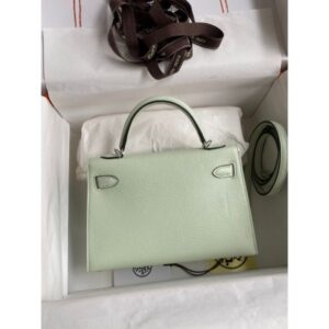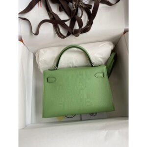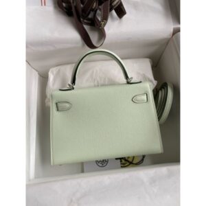 Hermes Kelly Mini II Sellier Handmade Bag In Vert Fizz Chevre Mysore Leather