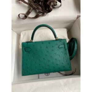 Hermes Kelly Mini II Sellier Handmade Bag In Vert Vertigo Ostrich Leather