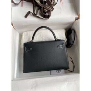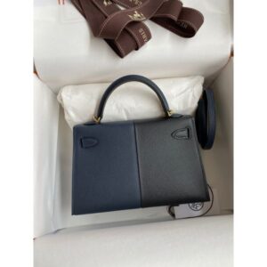 Hermes Kelly Mini II Sellier Verso Handmade Bag in Black and Blue Brume Epsom Calfskin