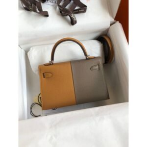 Hermes Kelly Mini II Sellier Verso Handmade Bag in Taupe and Bamboo Epsom Calfskin