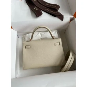 Hermes Kelly Mini II Verso Sellier Handmade Bag in Craie Epsom Calfskin