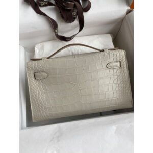 Hermes Kelly Pochette Handmade Bag In Beton Matte Alligator Leather