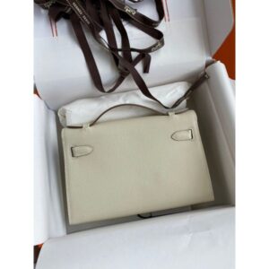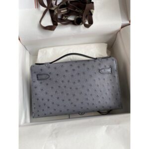 Hermes Kelly Pochette Handmade Bag in Gris Tourterelle Ostrich Leather