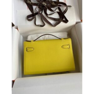 Hermes Kelly Pochette Handmade Bag In Jaune Poussin Epsom Calfskin