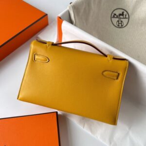 Hermes Kelly Pochette Handmade Bag In Jaune Ambre Swift Calfskin