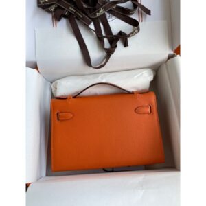 Hermes Kelly Pochette Handmade Bag in Orange Ostrich Leather