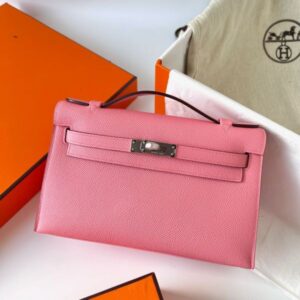 Hermes Kelly Pochette Handmade Bag In Rose Lipstick Epsom Calfskin