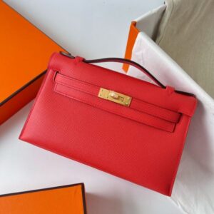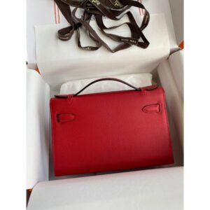Hermes Kelly Pochette Handmade Bag In Rouge Piment Epsom Calfskin