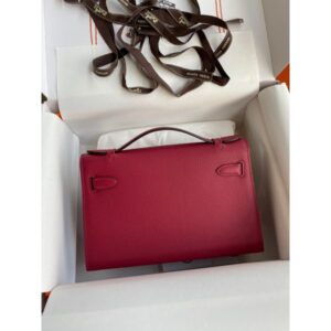 Hermes Kelly Pochette Handmade Bag In Rouge Grenat Epsom Calfskin
