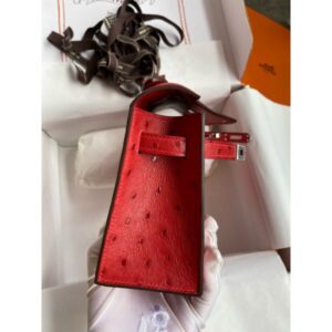 Hermes Kelly Pochette Handmade Bag in Rose Tyrien Ostrich Leather