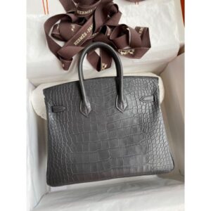 Hermes Birkin 25 Bag In Dark Grey Matte Alligator Crocodile Skin