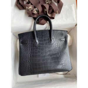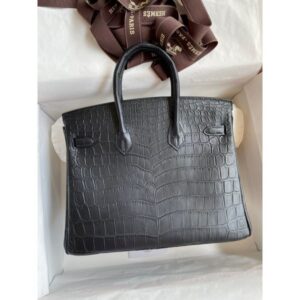 Hermes Birkin 25 Handmade Bag In Black Crocodile Niloticus Matte Skin
