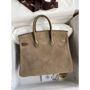 Hermes Birkin 25 Grizzly Bag in Taupe Veau Doblis and Swift Leather