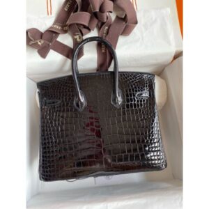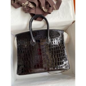 Hermes Birkin 25 Handmade Bag In Black Crocodile Niloticus Shiny Skin