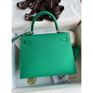 Hermes Kelly Sellier 25 Handmade Bag In Vert Jade Epsom Calfskin
