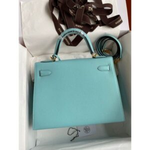 Hermes Kelly Sellier 28 Handmade Bag In Blue Atoll Epsom Calfskin