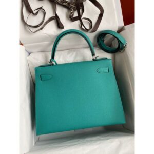 Hermes Kelly Sellier 25 Handmade Bag In Vert De Gris Epsom Calfskin