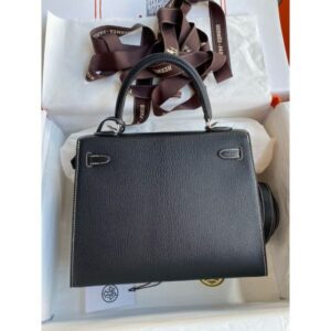 Hermes Kelly Sellier 25 Verso Handmade Bag in Black Epsom Calfskin