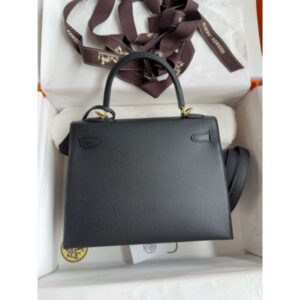 Hermes Kelly Sellier 28 Handmade Bag In Black Epsom Calfskin