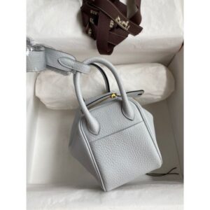 Hermes Mini Lindy Handmade Bag In Blue Brume Clemence Leather