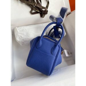 Hermes Mini Lindy Handmade Bag In Blue Electric Clemence Leather