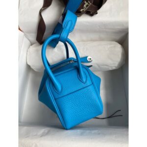 Hermes Mini Lindy Handmade Bag In Blue Frida Clemence Leather