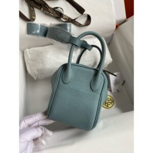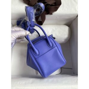 Hermes Mini Lindy Handmade Bag In Blue Nuit HHL19clbnClemence Leather