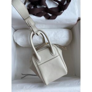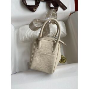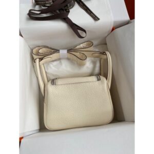 Hermes Mini Lindy Handmade Bag In Pearl Grey Clemence Leather