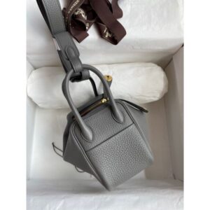Hermes Mini Lindy Handmade Bag In Gris Meyer Clemence Leather