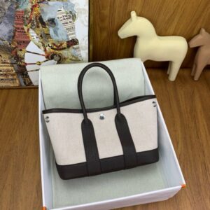 Hermes Neo Garden Party 23 Bag in Canvas and Chai Negonda Calfskin