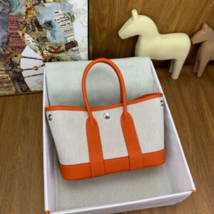 Hermes Neo Garden Party 23 Bag in Canvas and Orange Negonda Calfskin