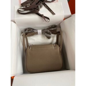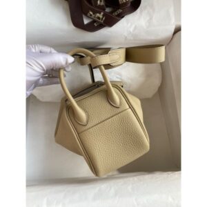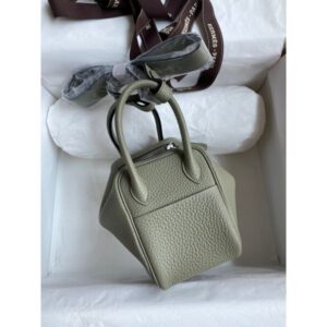 Hermes Mini Lindy Handmade Bag In Vert Amande Clemence Leather