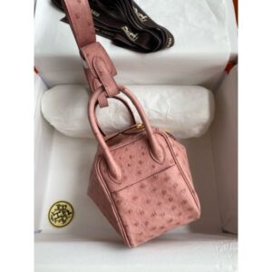 Hermes Mini Lindy Handmade Bag In Rose Sakura Ostrich Leather