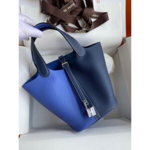 Hermes Picotin Lock 18 Bicolor Handmade Bag in Blue and Blue Saphir Clemence Leather