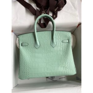 Hermes Birkin 25 Retourne Handmade Bag In Vert D’eau Matte Alligator Leather