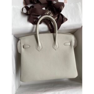 Hermes Birkin 25 Retourne Handmade Bag In Pearl Grey Clemence Leather