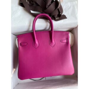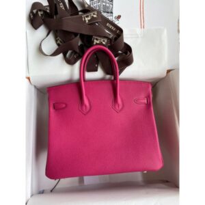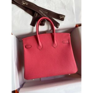 Hermes Birkin 25 Retourne Handmade Bag In Rose Lipstick Clemence Leather