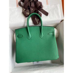 Hermes Birkin 25 Retourne Handmade Bag in Vert Cypres Clemence Leather