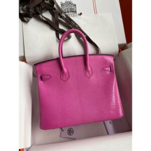 Hermes Birkin 25 Retourne Handmade Bag In Pink Lizard Leather