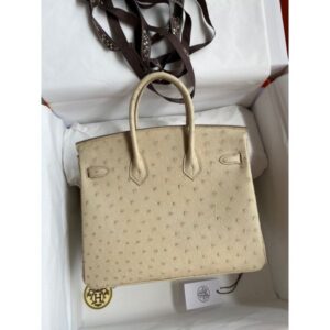 Hermes Birkin 25 Retourne Handmade Bag In Parchemin Ostrich Leather